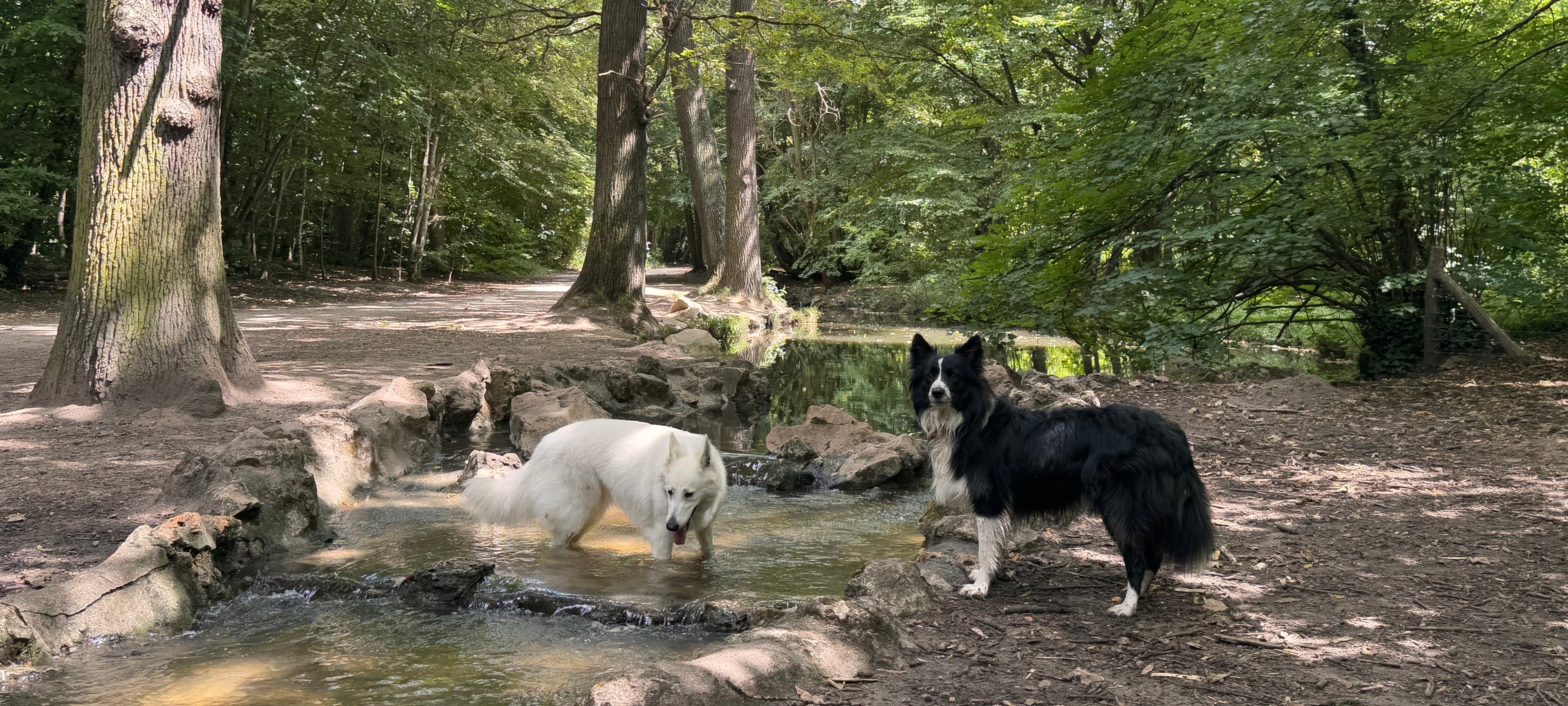 Toutes nos balades de chien en meute, les cours collectif et certains cours particulier, sont réalisées dans le bois de Vincennes. Le bois de Vincennes est l'un des plus grands espaces verts de Paris, offrant de vastes étendues où les chiens peuvent courir et jouer librement. Le bois de Vincennes propose une variété de paysages qui stimulent les sens des chiens, rendent les promenades plus intéressantes et qui sont propices à la socialisation avec d'autres animaux.